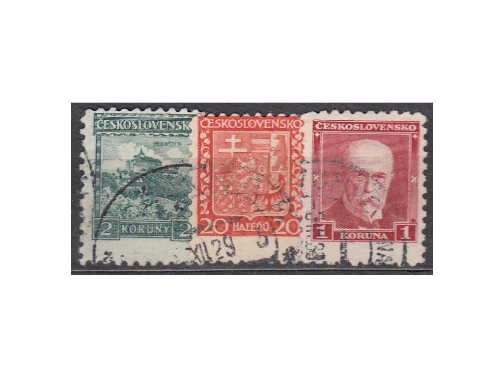 2K Pernštýn, 20h Znak a 1K TGM, všechny s posunutou spodní perforací, razítkované