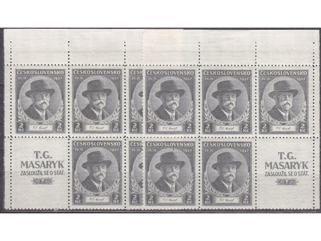 Poštovní známka 2Kč TGM, L+P horní roh. 6bloky, Nr.325, **