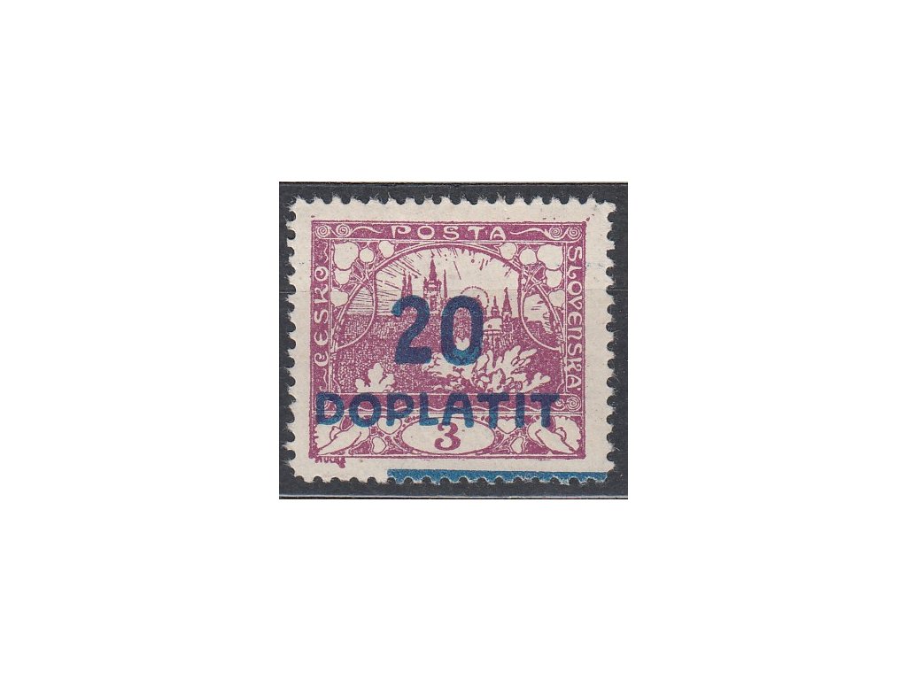 Doplatní známka 3/20h fialová, ministr. Řz.11 1/2, posunutý přetisk mimo hodnotový štítek, Nr.DL16, * po nálepce