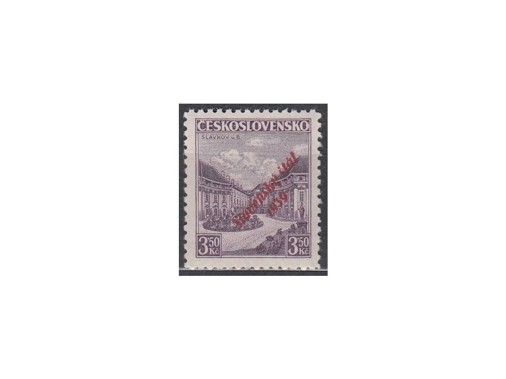 Poštovní známka 3.50Kč Slavkov, červený přetisk, ověřena, Nr.19a, **