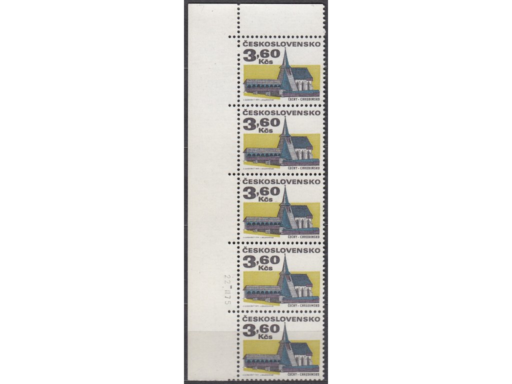 Poštovní známka 3.60Kčs Lidová architektura, papír oz, rohová 5páska s datem tisku, Nr.1879xb, **