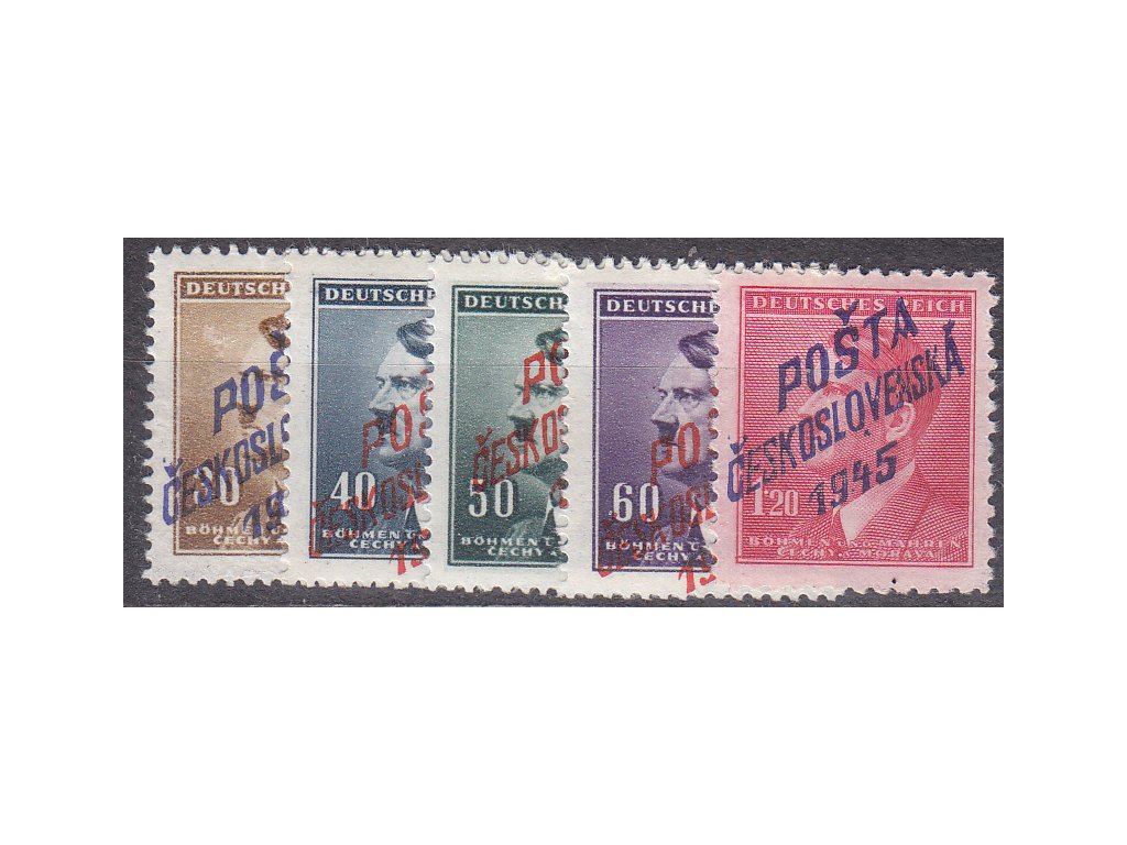 Poštovní známky 30h-1.20K Hitler, 5 hodnot s přetiskem POŠTA ČESKOSLOVENSKÁ 1945, **