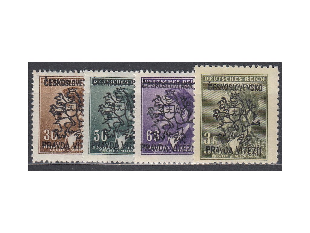 Poštovní známky 30h-3K Hitler, 4 hodnoty s přetiskem ČESKOSLOVENSKO "lev" PRAVDA VÍTĚZÍ, **