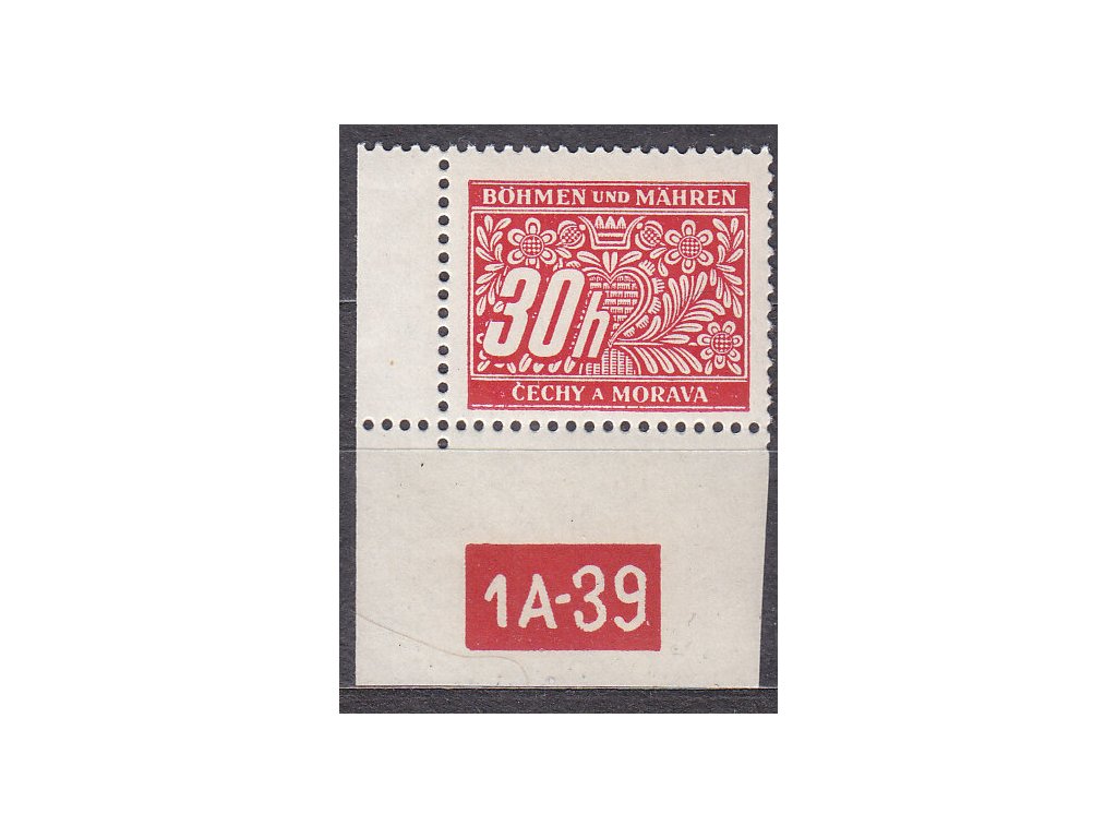 Doplatní známka 30h červená, levý roh. kus s DČ 1A-39, varianta X, Nr.DL4, **