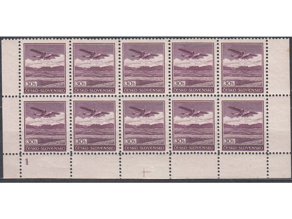 Poštovní známka 30h fialová, spodní 10blok s DČ 1 a křížkem na okraji, Nr.L15, **