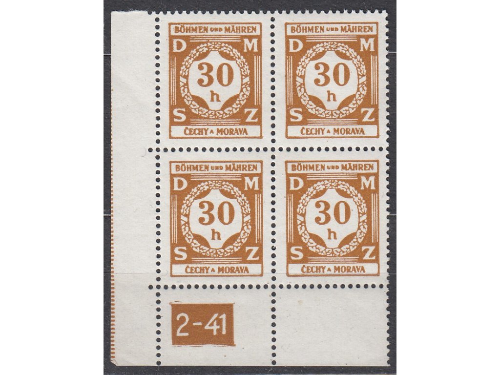 Poštovní známka 30h hnědá, rohový 4blok s DČ 2-41 a otiskem ochranného rámu na okraji, Nr.SL1, **