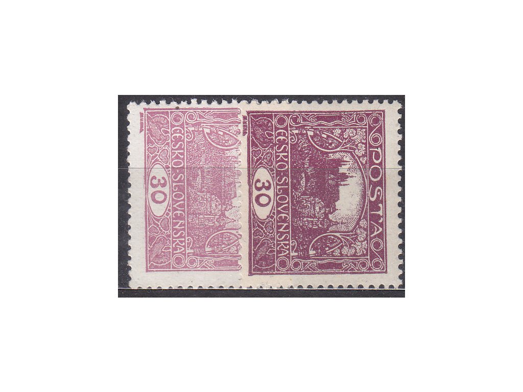 Známka Hradčany 30h světle a tmavě fialová, Hz.11 3/4, Nr.13B, **/*, ilustrační foto