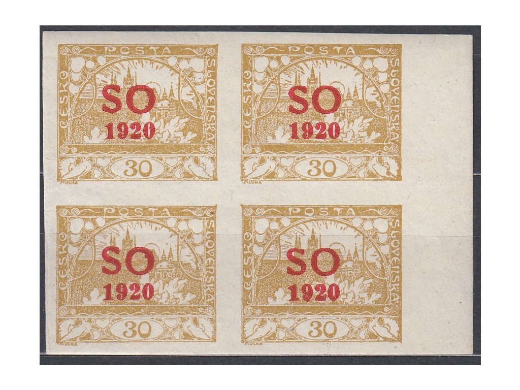 Poštovní známka 30h žlutá, krajový 4blok, Nr.SO9, **