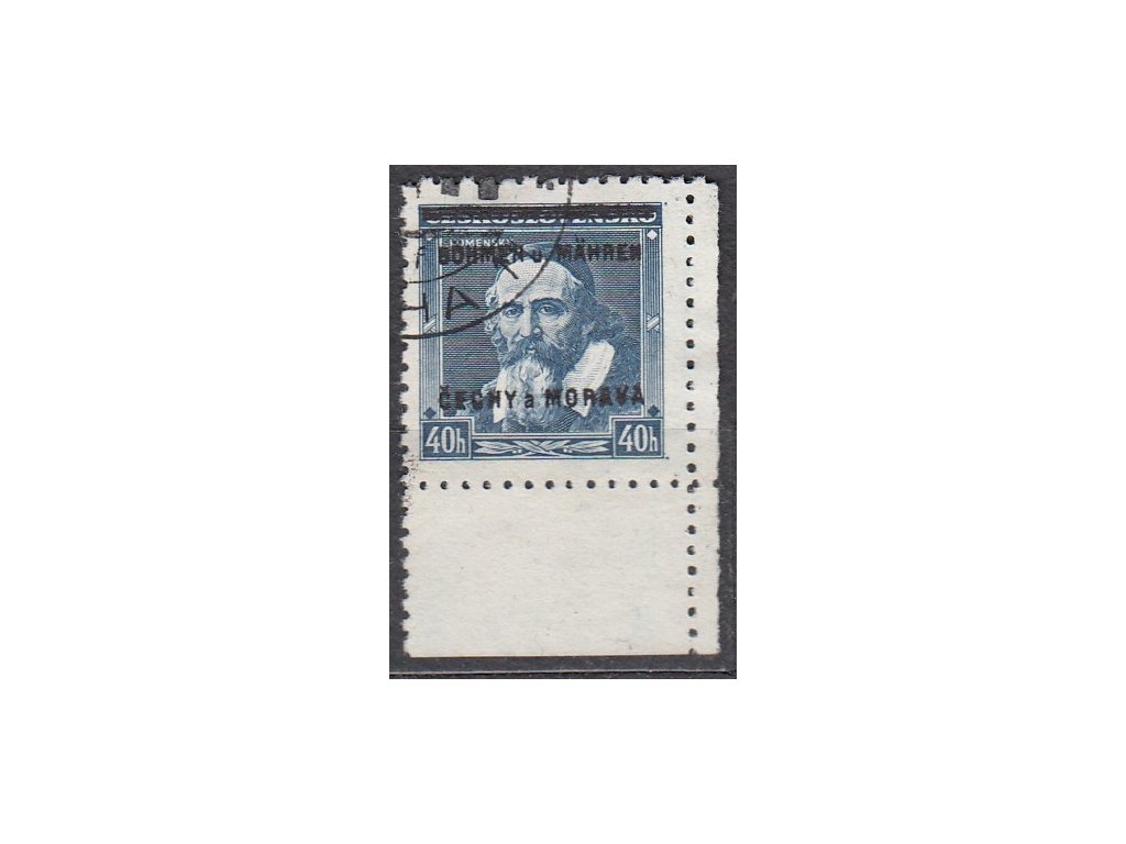 40h Komenský, pravý dolní rohový kus, Nr.6, razítkované