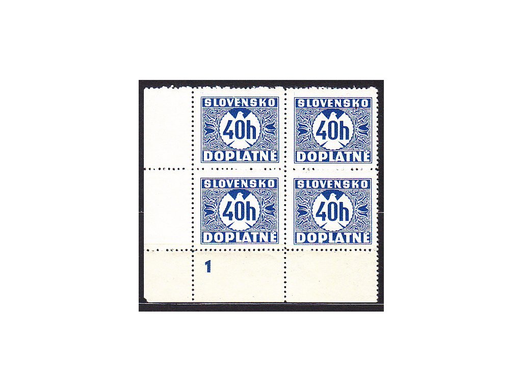 40h modrá, hladký lep, roh. 4blok s DČ 1, Nr.DL5, **