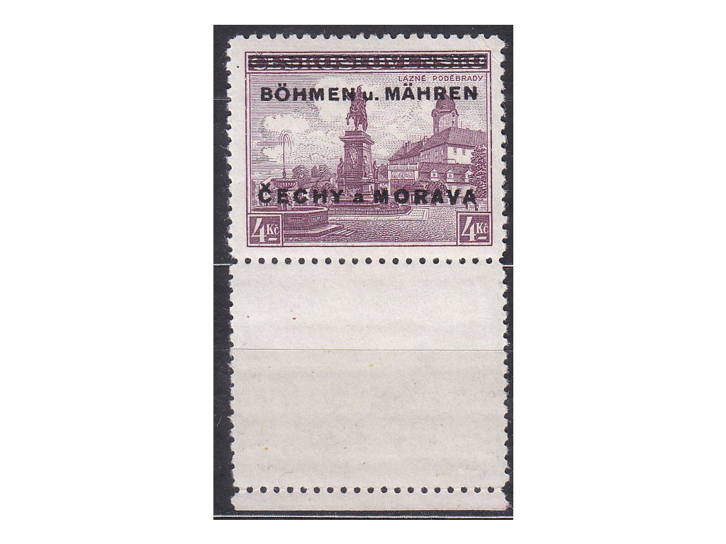 1939, 1.60Kč Kutná Hora, pravý dolní roh. 6blok, úzký okraj, Nr.13, **, silně natrženo v perforaci dole mezi zn.