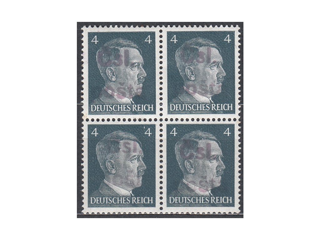 Poštovní známka 4Pfg Hiler, 4blok s přetiskem Čsl. POŠTA, **