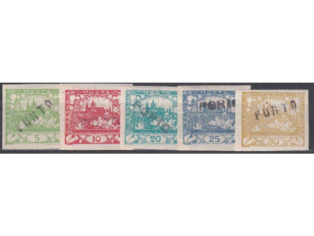 Poštovní známky 5,10,20,25 a 30h Hradčany, přetisk PORTO, * po nálepce