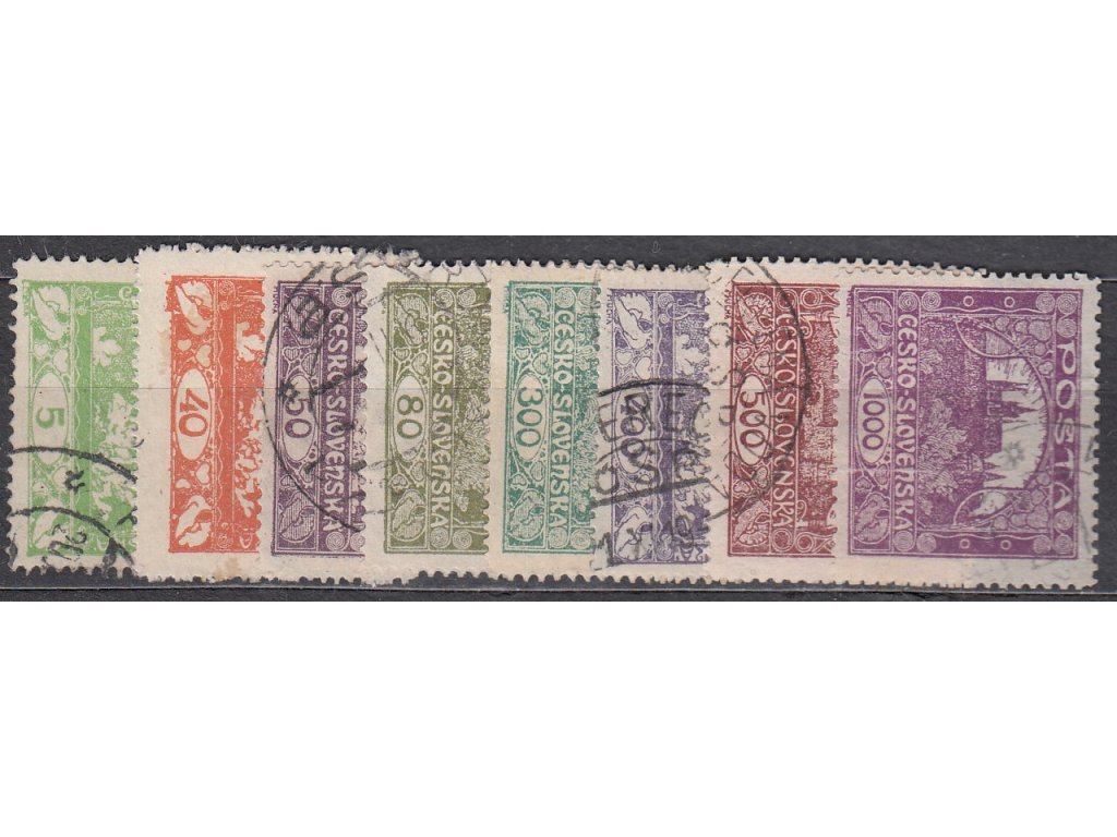 Poštovní známky 5-1000h Hradčany, 8 ks různých hodnot s ministr. Řz.13 3/4 nebo jemnější, razítkované
