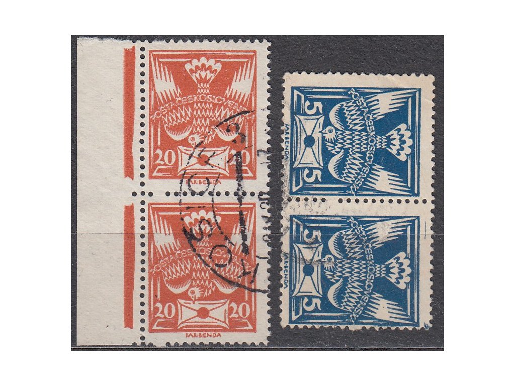 Poštovní známky 5 a 20h Holubice, 2pásky s vynechaným perforačním otvorem, Nr.143,148, razítkované