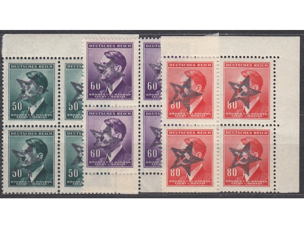 Poštovní známky 50,60 a 80h Hitler, 4bloky s přetiskem "hvězda", **