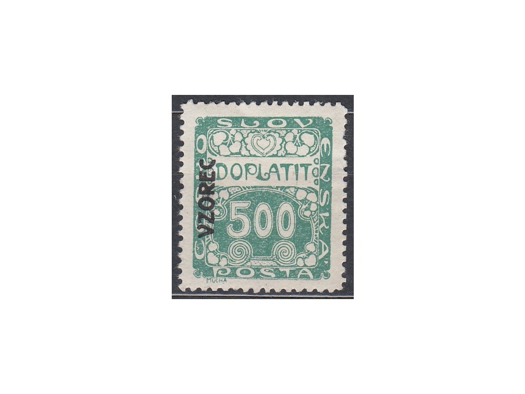 Poštovní známka 500h zelená, Řz.11 1/2, VZOREC (vlevo nahoru), Nr.DL12, * po nálepce