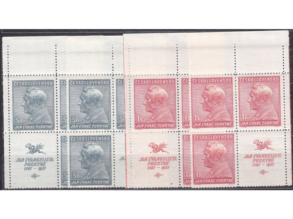 Známky 50h-1Kč Purkyně, L+P horní 4bloky s kupony, Nr.322-3, **