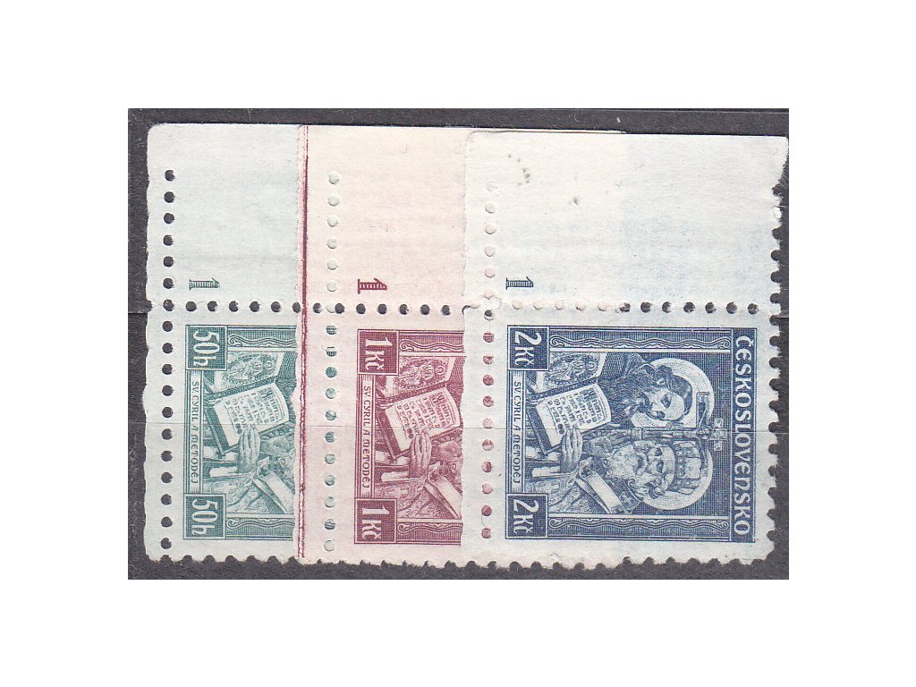 Poštovní známka 50h-2Kč Metoděj, roh. kusy s DČ 1 - úzký okraj, Nr.292-4, **