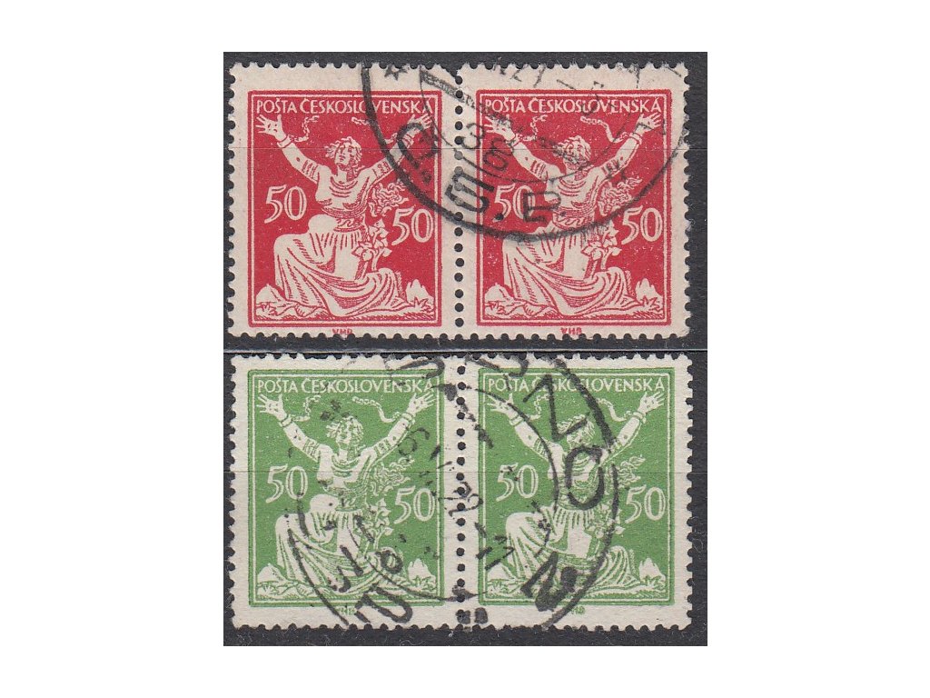 Poštovní známky 50h červená a zelená, 2pásky s DV - vajíčko v pase, Nr.155,156DV, razítkované