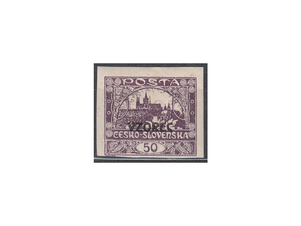 Známka Hradčany 50h fialová, VZOREC, Nr.15vz, * po nálepce, dole těsný střih, dv