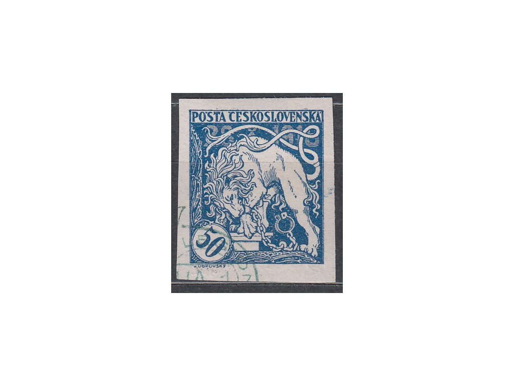 Poštovní známka 50h modrá, nezoubkovaná, I.typ, nátisk, zk.Karásek, Nr.50N, * po nálepce