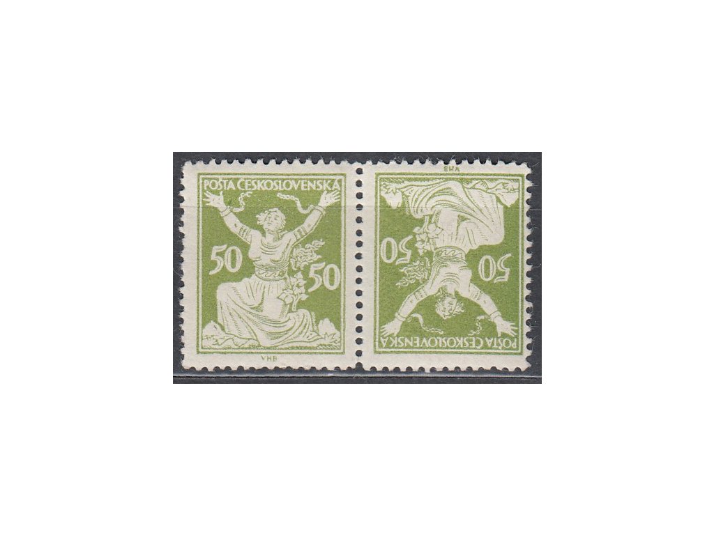 Poštovní známka 50h zelená, úzká protichůdná dvojice, Nr.156TBa, * po nálepce