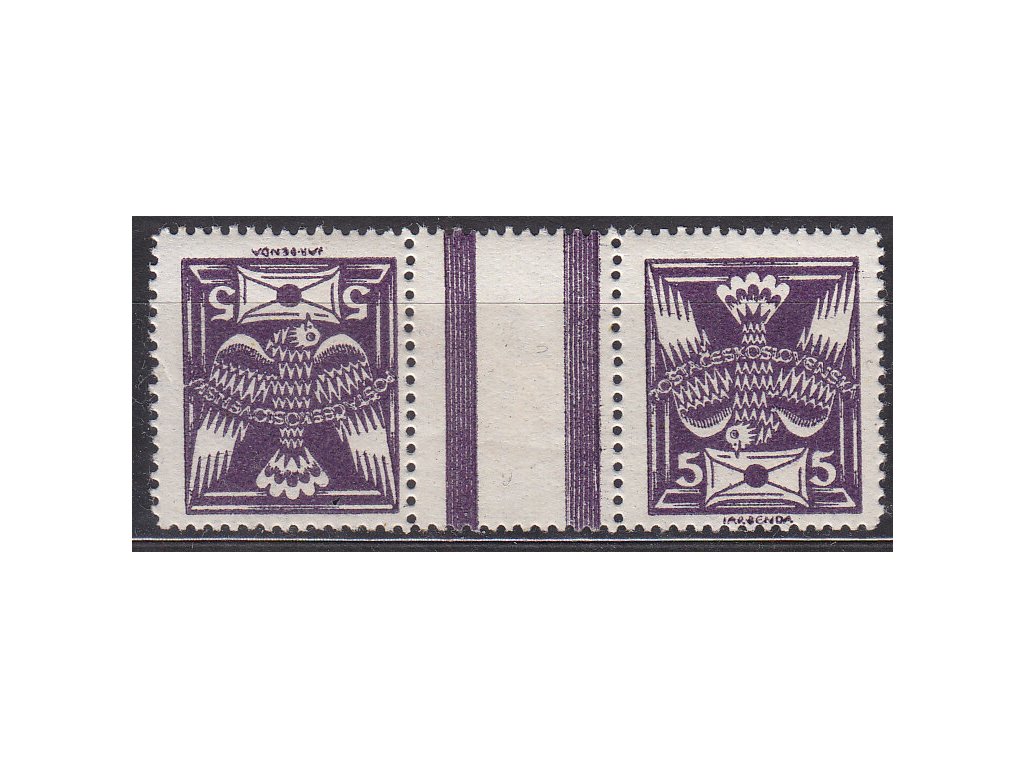 Známka 5h fialová, široká protichůdná dvojice, Nr.144TBb, * po nálepce, ilustrační foto