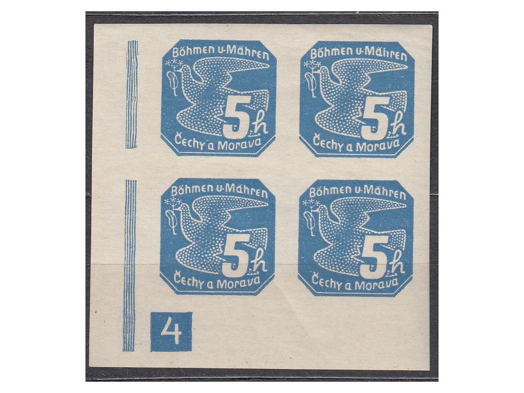 1943, 5h modrá, 2krát rohový čtyřblok s DČ 14-43, Nr.NV.11, **