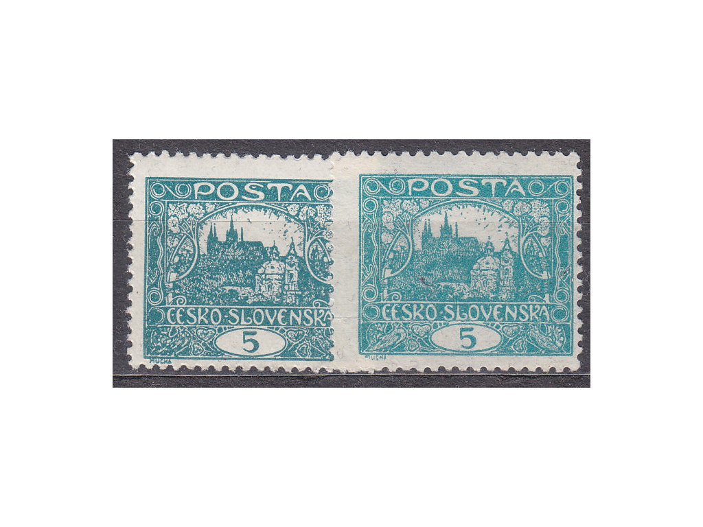 Známka Hradčany 5h modrozelená, Hz.11 3/4, I a II typ spirály, Nr.4B, **, dv
