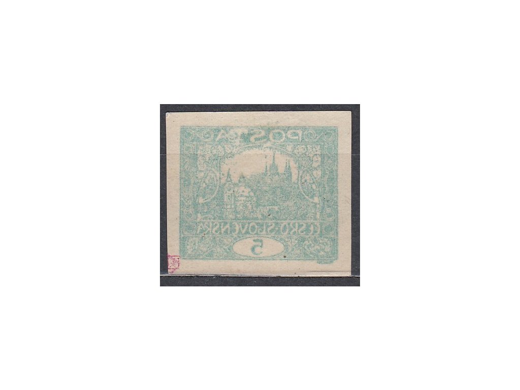 Známka Hradčany 5h modrozelená, lehký obtisk, Nr.4, * po nálepce