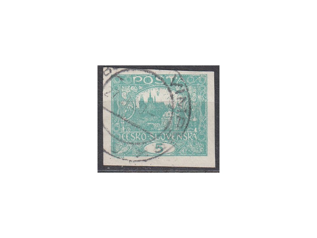 Známka Hradčany 5h modrozelená, příčkový podtyp, Nr.4, razítkované