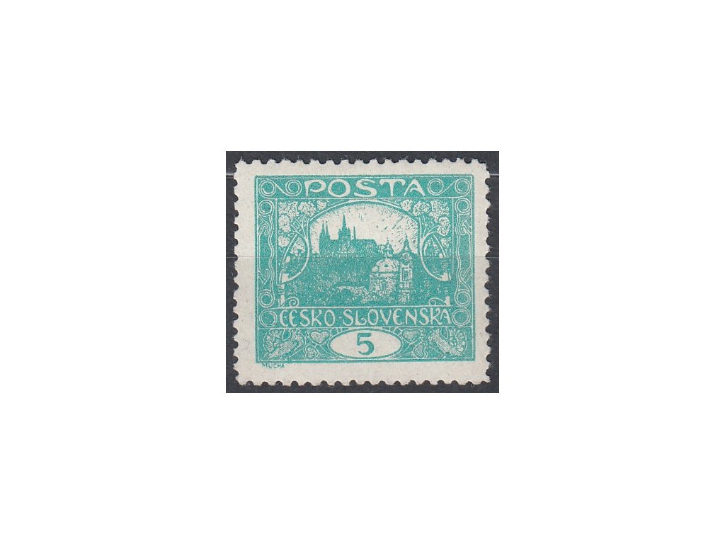 Známka Hradčany 5h modrozelená, Řz.11 1/2, zk.Gilbert, Nr.4D, **