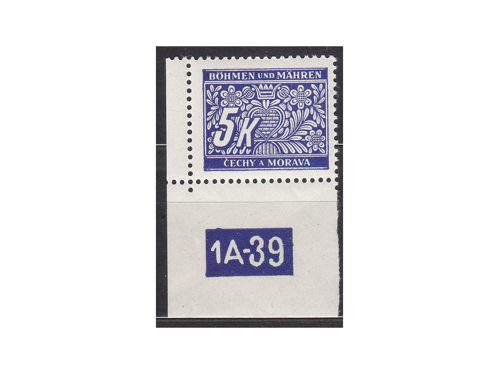 5K modrá, levý roh. kus s DČ1A-39, varianta X, Nr.DL12, **