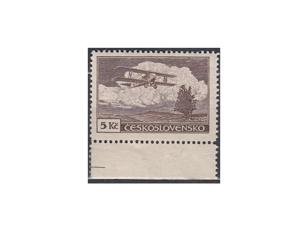 Letecká známka 5Kč hnědá, krajový kus s křížkem na okraji, Nr.L12, **