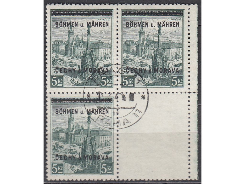 Poštovní známka 5Kč Olomouc, 4blok s pravým kuponem, Nr.18, razítkované