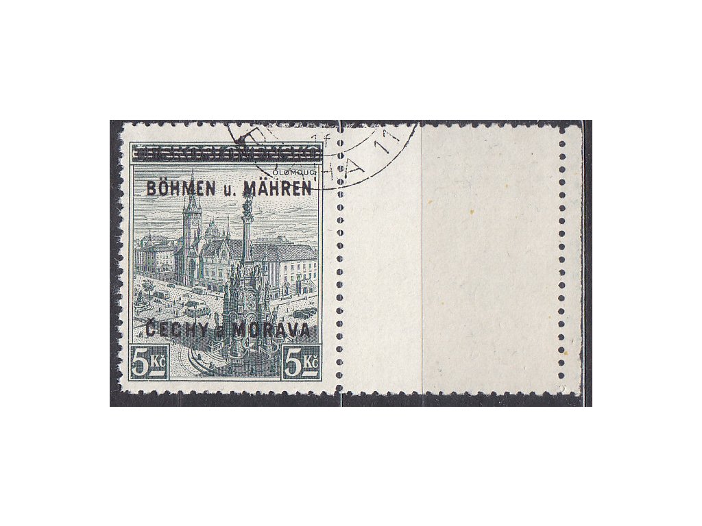 Poštovní známka 5Kč Olomouc, pravý kupon, Nr.18, razítkované