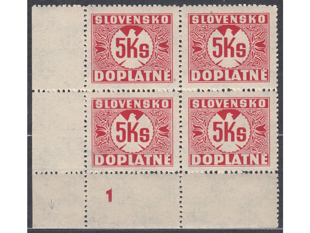 Doplatní známka 5Ks červená, průsvitka 2, roh. 4blok s DČ 1, Nr.DL22, **