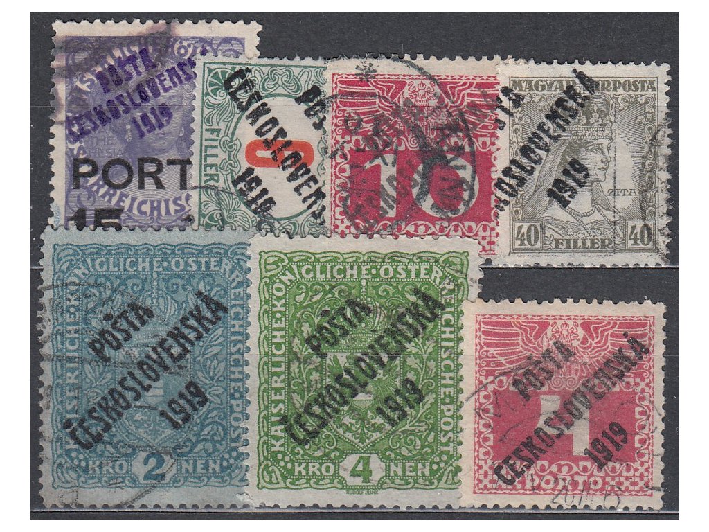 7 ks rakouských a uherských zn., vše s padělanými přetisky, razítkované