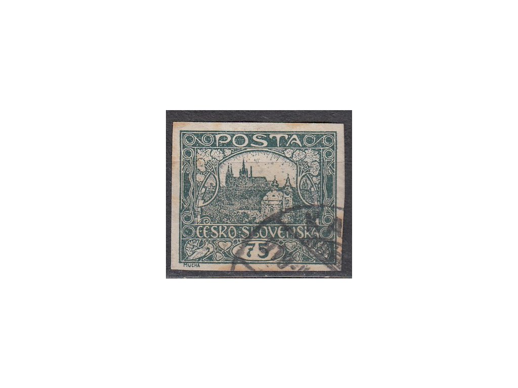Známka Hradčany 75h šedozelená, příčkový typ, Nr.18, razítkované, horší jakost známky