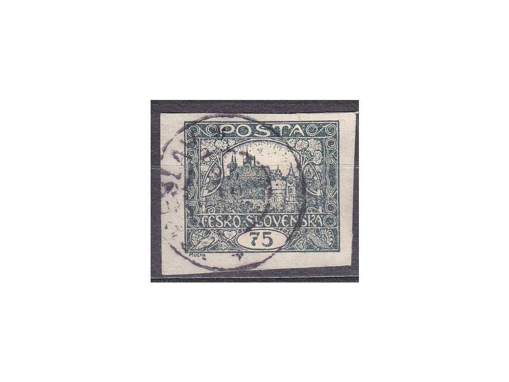 Známka Hradčany 75h šedozelená, příčkový typ, Nr.18, razítkované