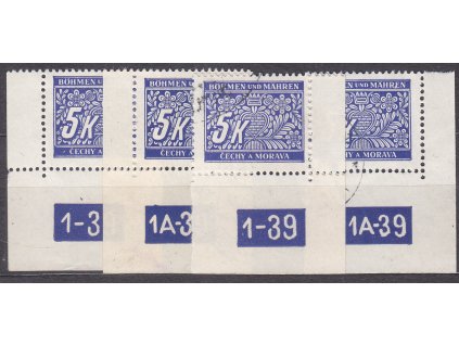 2K modrá, 4 roh. 4bloky s DČ - každé jiné, různé varianty okrajů, Nr.DL11, razítkované