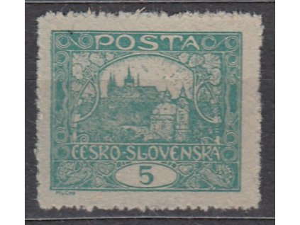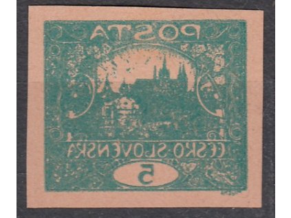 5h modrozelená, ZT na nahnědlém papíru s plným obtiskem, bez lepu, Nr.4, nálepka na líci