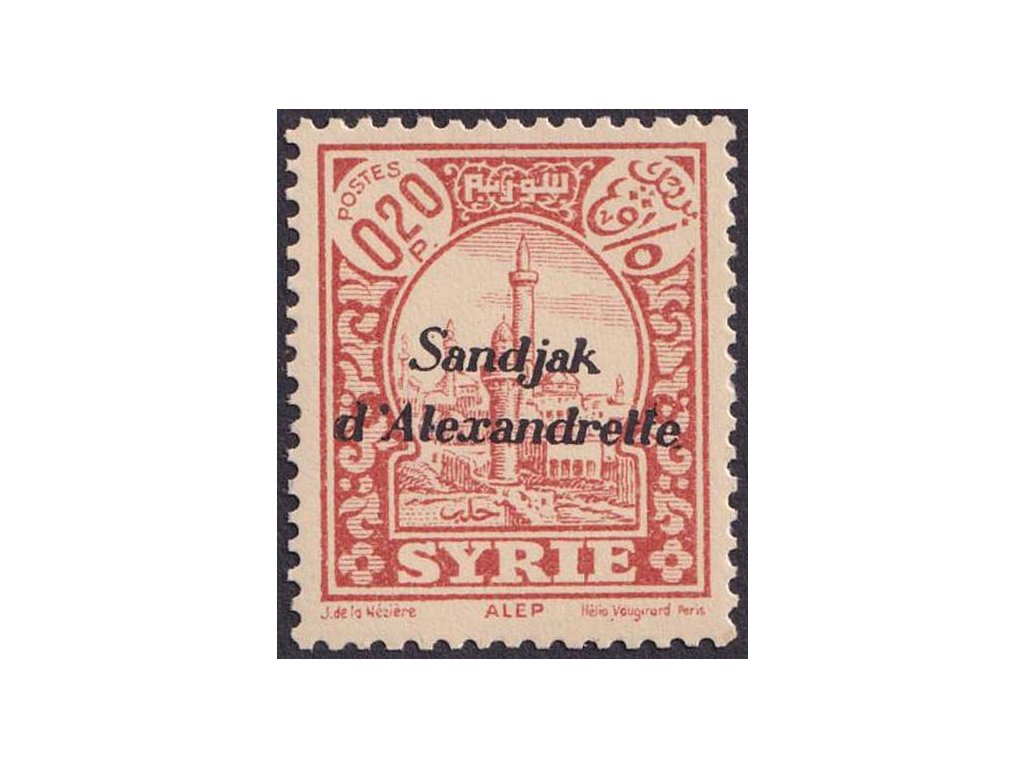 Poštovní známka, Alexandrette, 1938, 0.20 Pia s přetiskem Sandjak, MiNr.2, **