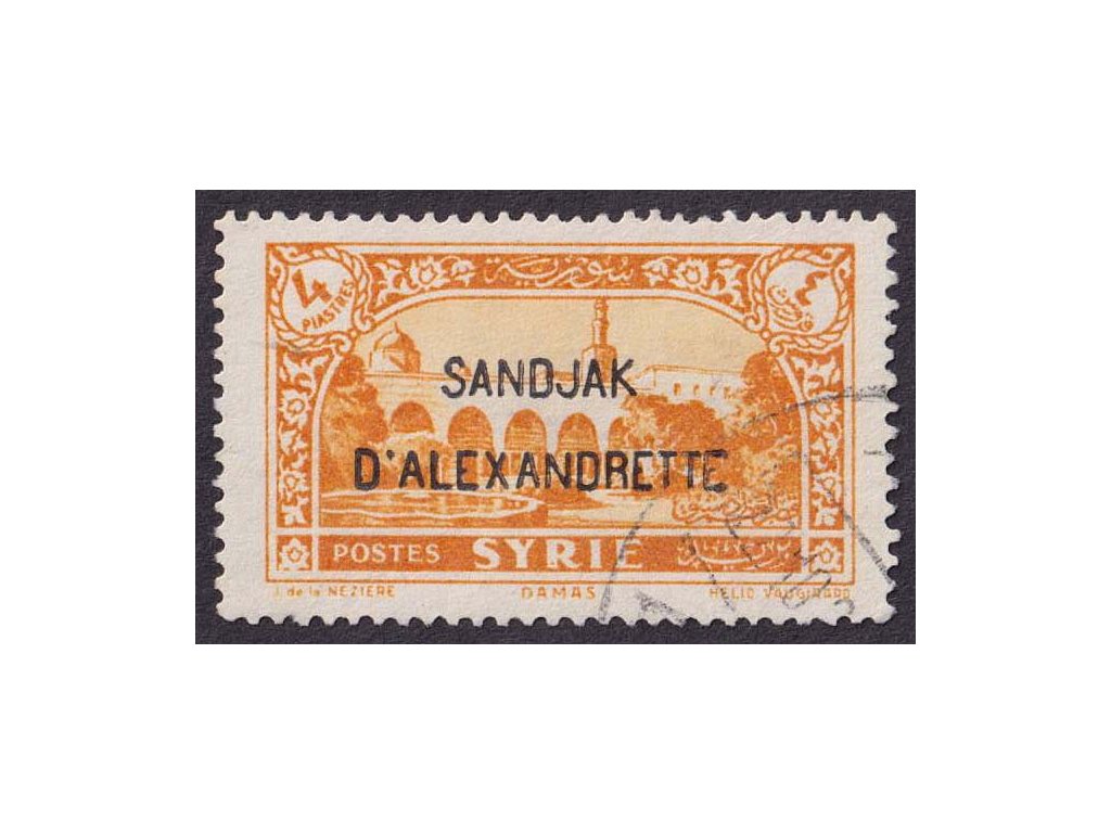Alexandrette, 1938, 4 Pia s přetiskem Sandjak, MiNr.8, razítkované