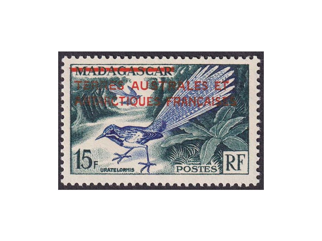 Poštovní známka, Antarktitské území, 1955, 15 Fr s přetiskem, MiNr.1, * po nálepce