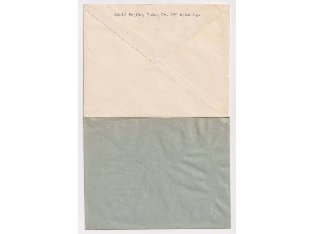 Aussig, 1938, 2 ks firemních dopisů, provizorní razítka Aussig, prošlé