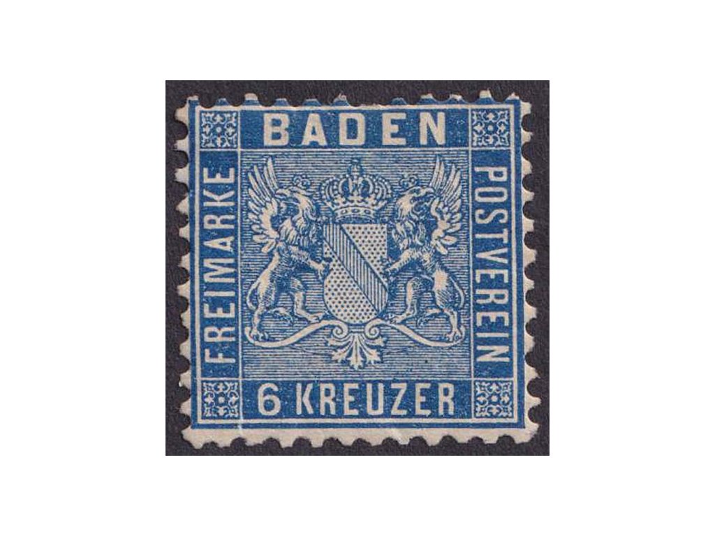 Poštovní známka, Baden, 1862, 6 Kr Znak, MiNr.14b, * po nálepce, nepatrné zeslabení, krátký zoubek