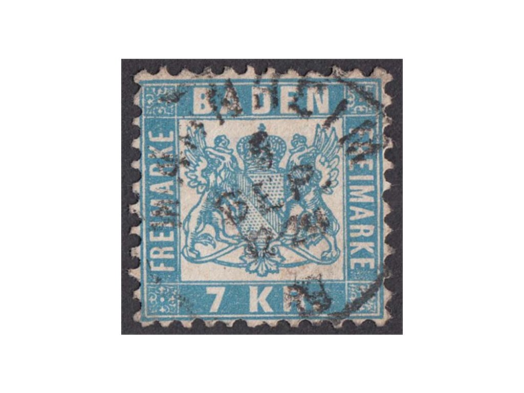 Baden, 1868, 7 Kr Znak, MiNr.25, razítkované, zeslabeno - viz. foto
