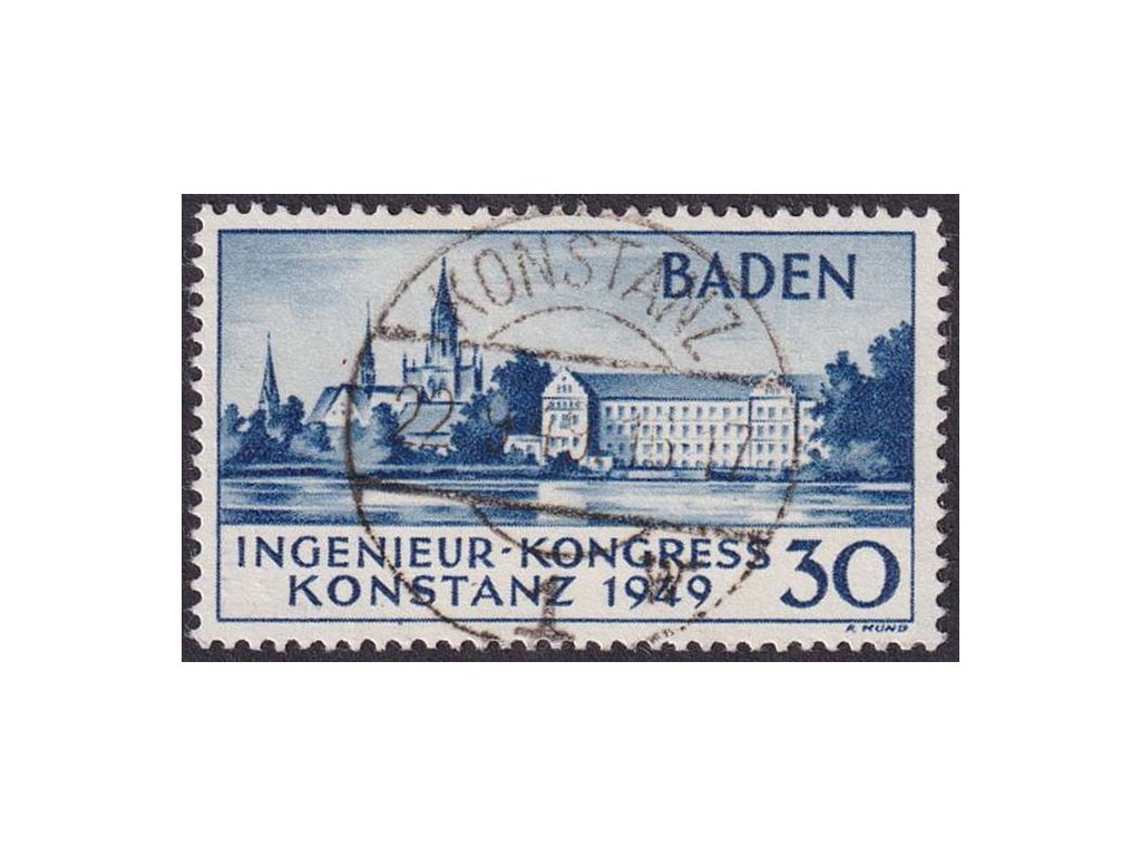 Poštovní známka, Baden, 1949, 30 Pf Konstanz, typ II., ověřeno, MiNr.46II, razítkované, Mi. 1900 Eur